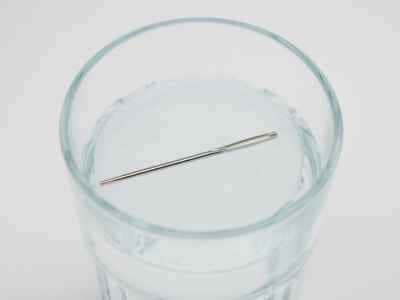 - When the needle is placed gently on the water's surface, the cohesive forces between water molecules create a flexible, stretched membrane (aka skin formation) that supports the needle's weight.